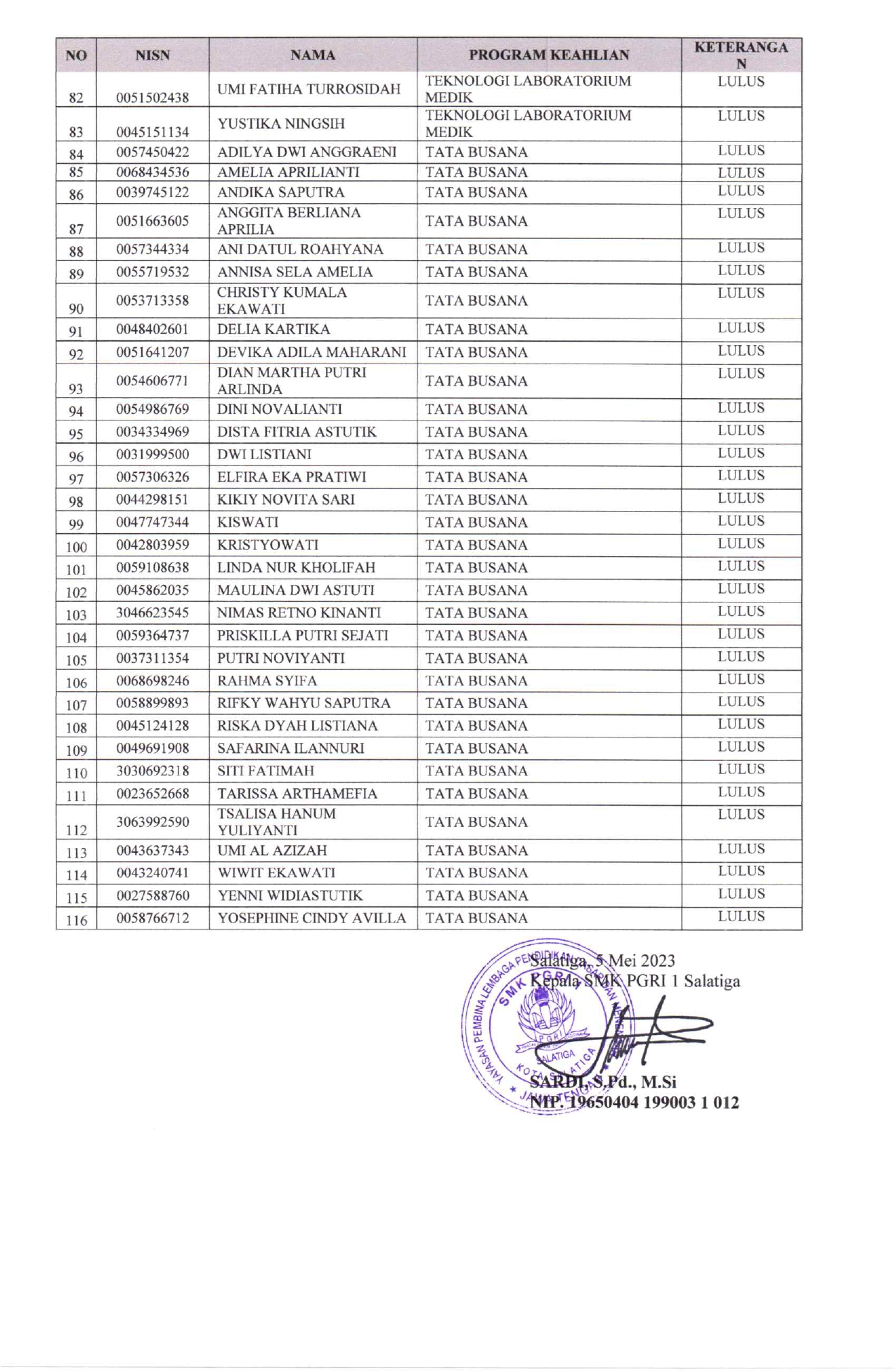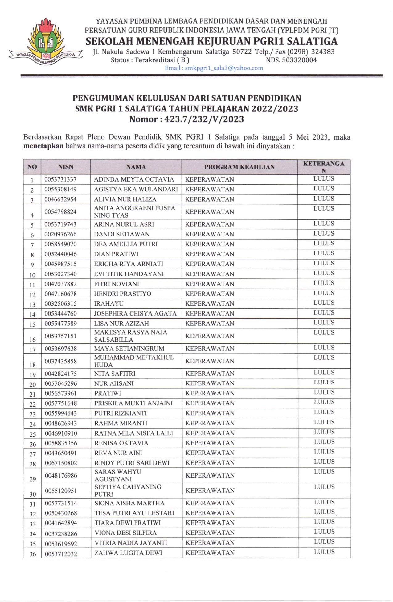 PENGUMUMAN KELULUSAN TAHUN PELAJARAN 2022/2023